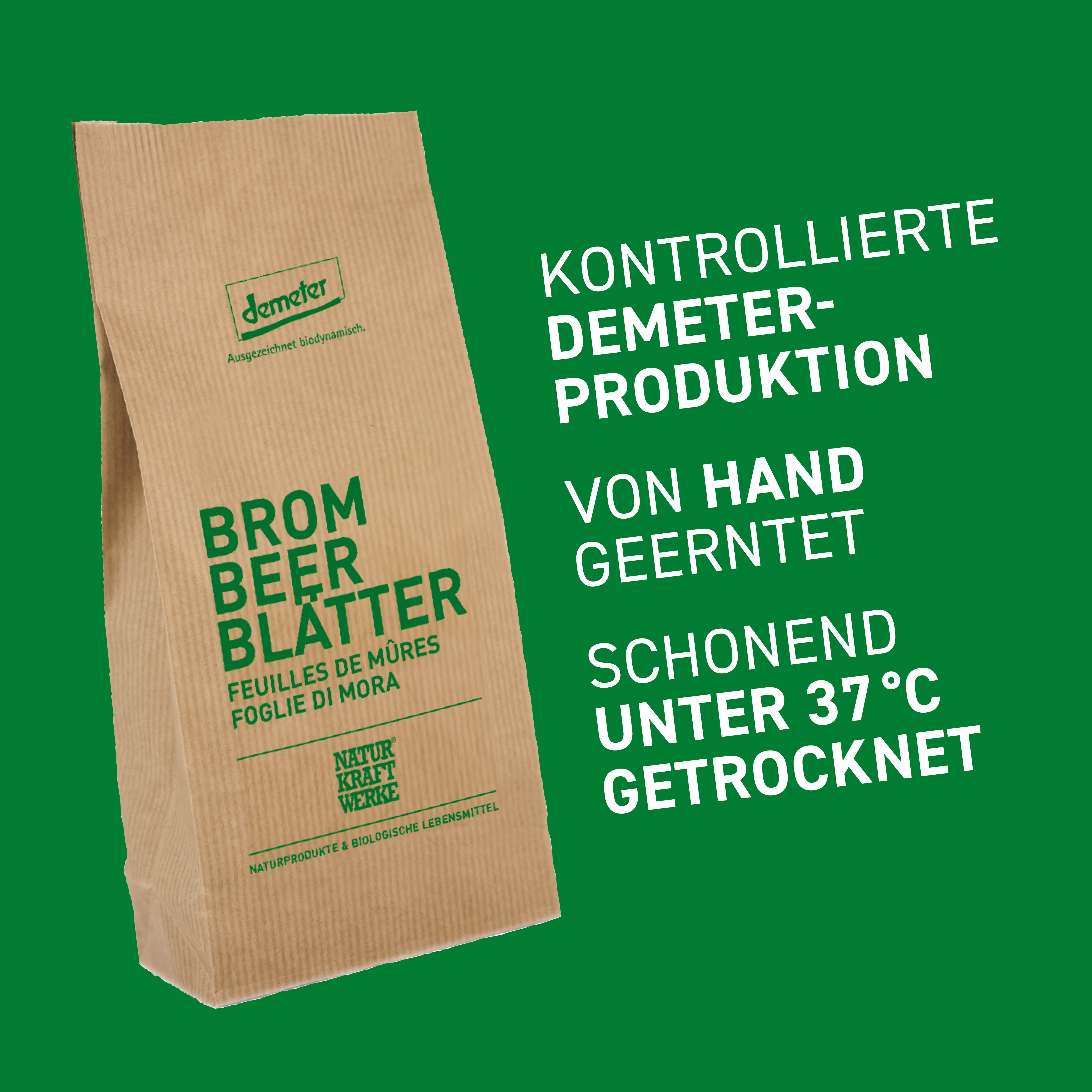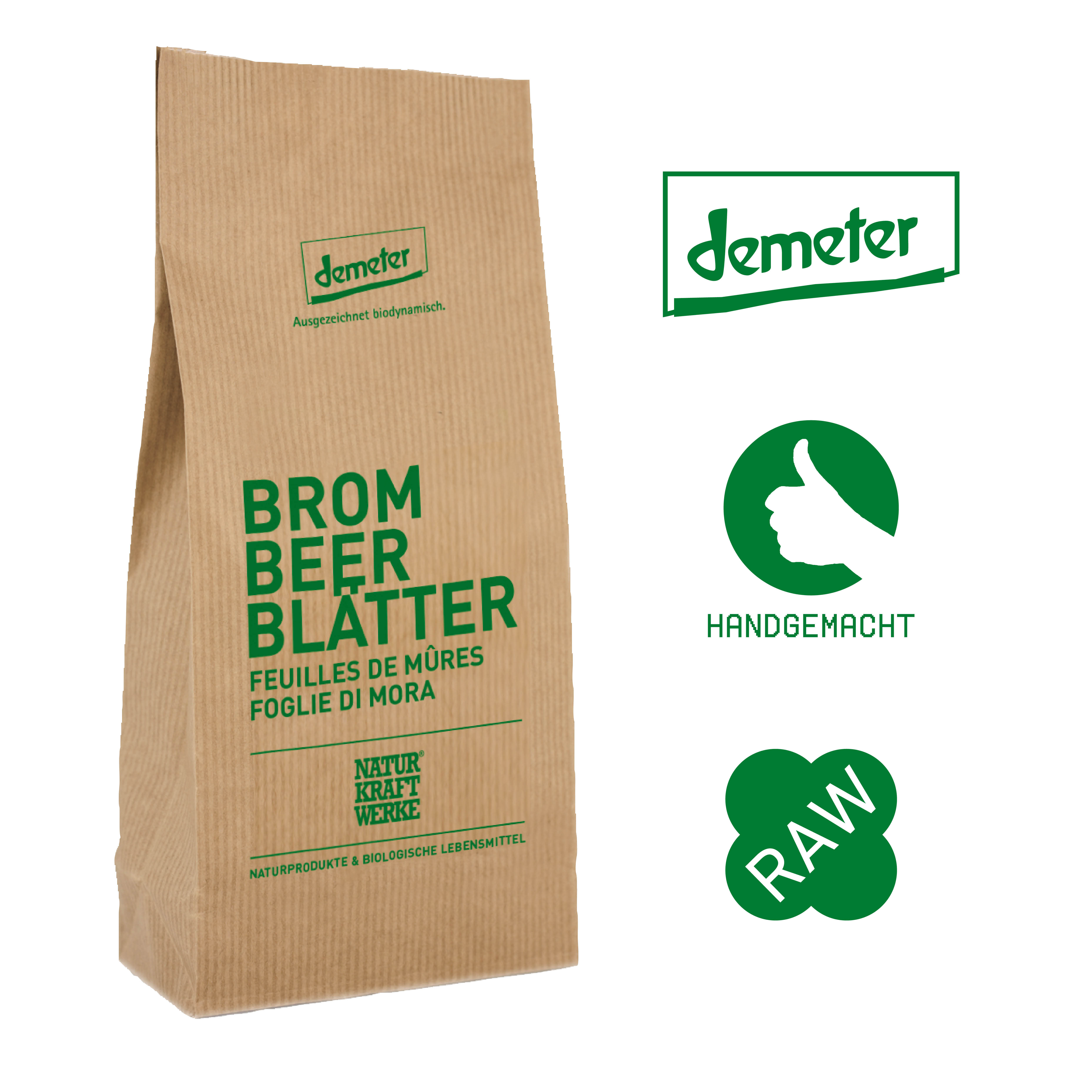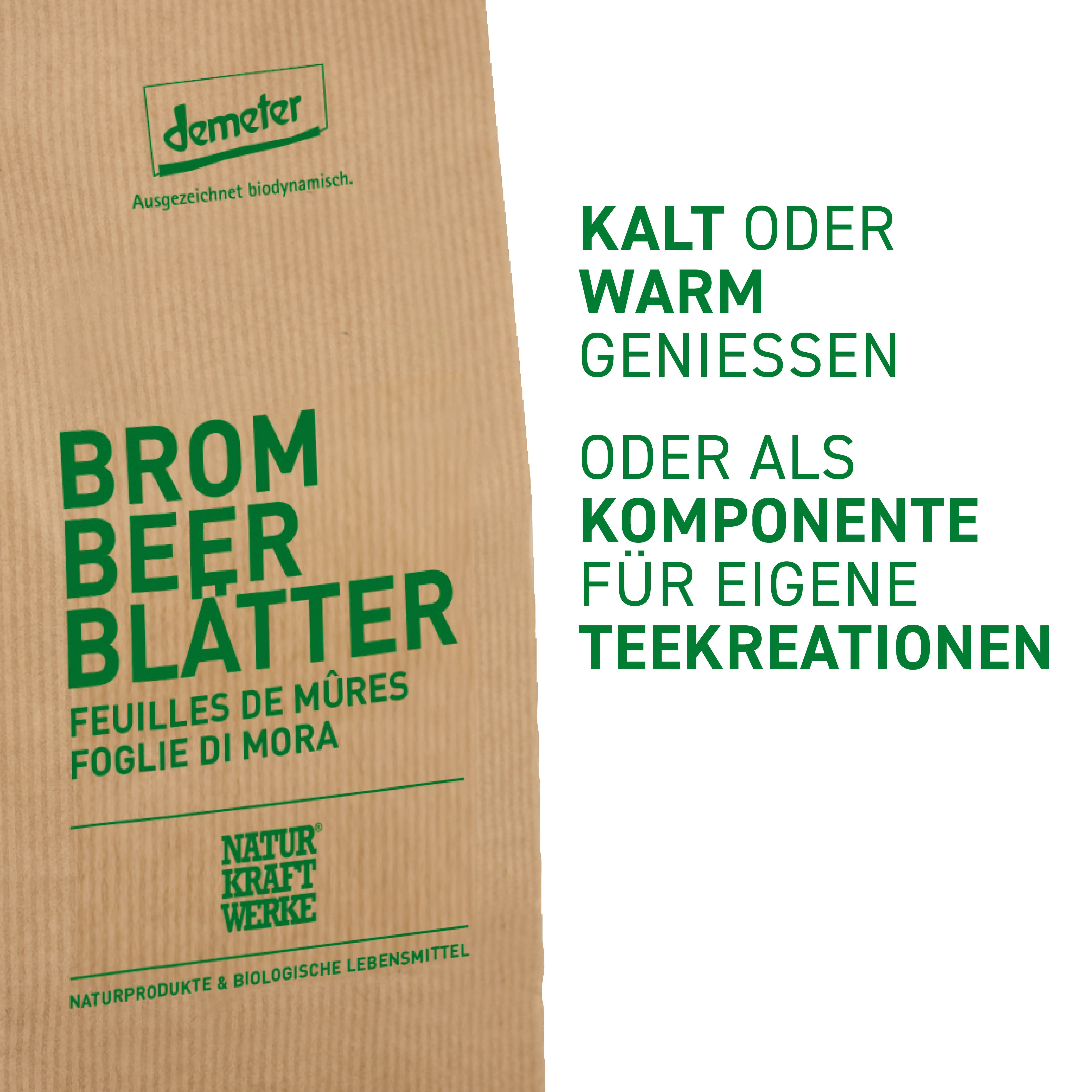 Die Naturkraftwerke Brombeerblätter sind von Hand geerntet und schonendst getrocknet. Ideal als Alltagsgetränk, kalt oder warm oder als Komponente in eigenen Kräuterteekreationen.
