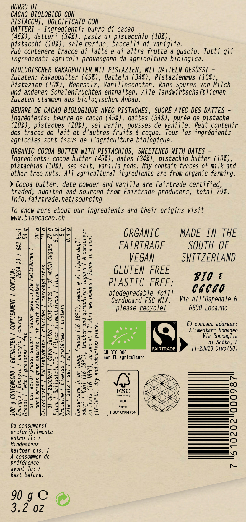 Produktinformationen "Schokolade vegan Cacao & Dates White Pistachio 90 g BIO/kbA"