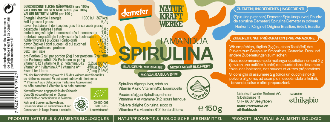 Produktinformationen "Spirulina Tamandua Pulver 150 g Demeter"