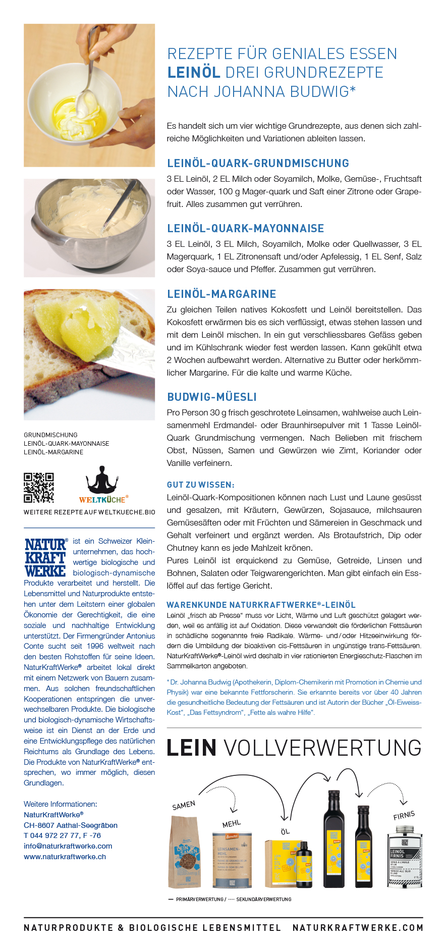 Biologisches Leinöl ist frei von Pestiziden und Chemikalien, die in konventionell angebauten Pflanzen vorkommen können. Bio-Produkte bieten oft eine höhere Qualität und Reinheit. Noch besser sind Demeter Produkte.