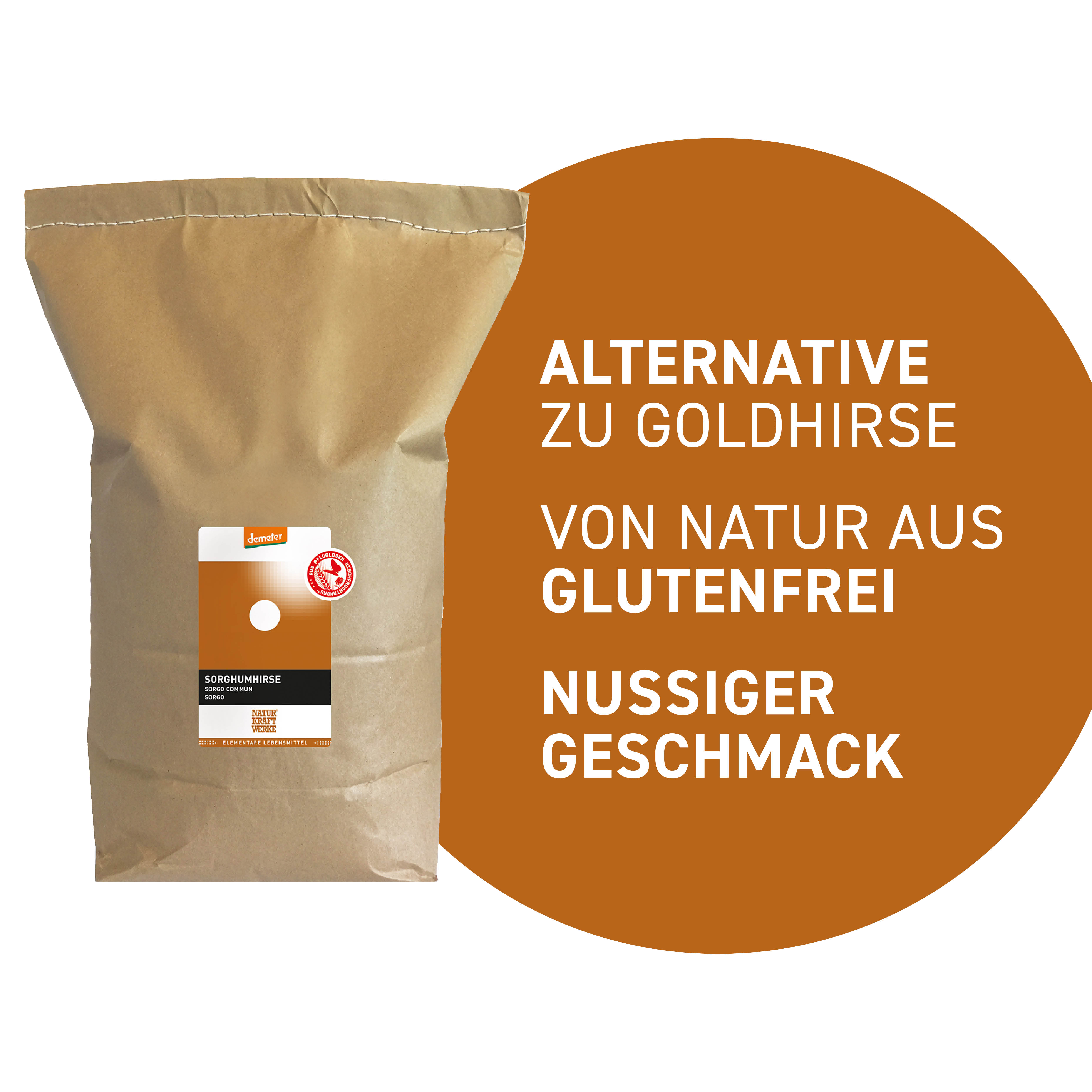 Unsere Sorghumhirse stammt aus pfluglosem Mischfruchtanbau von unserem Partnerlandwirt aus Österreich. Der Anbau erfolgt nach den strengen Demeter-Richtlinien. Die Hirse besticht durch geringe Standortansprüche und ausgesprochen gute Toleranz bei Hitze und Trockenheit. Durch seine spezielle Morphologie besitzt das Rispengras eine Art Verdunstungsschutz; somit kann die Pflanze in Dürrephasen ihr bereits aufgenommenes Wasser speichern. Die geringen Standortansprüche sowie die Trockenheitstoleranz machen das Süssgras zu einer interessanten Pflanze für den Bio- und Demeter-Anbau sowie auch für die Kultivierung in trockenen und heissen Regionen.