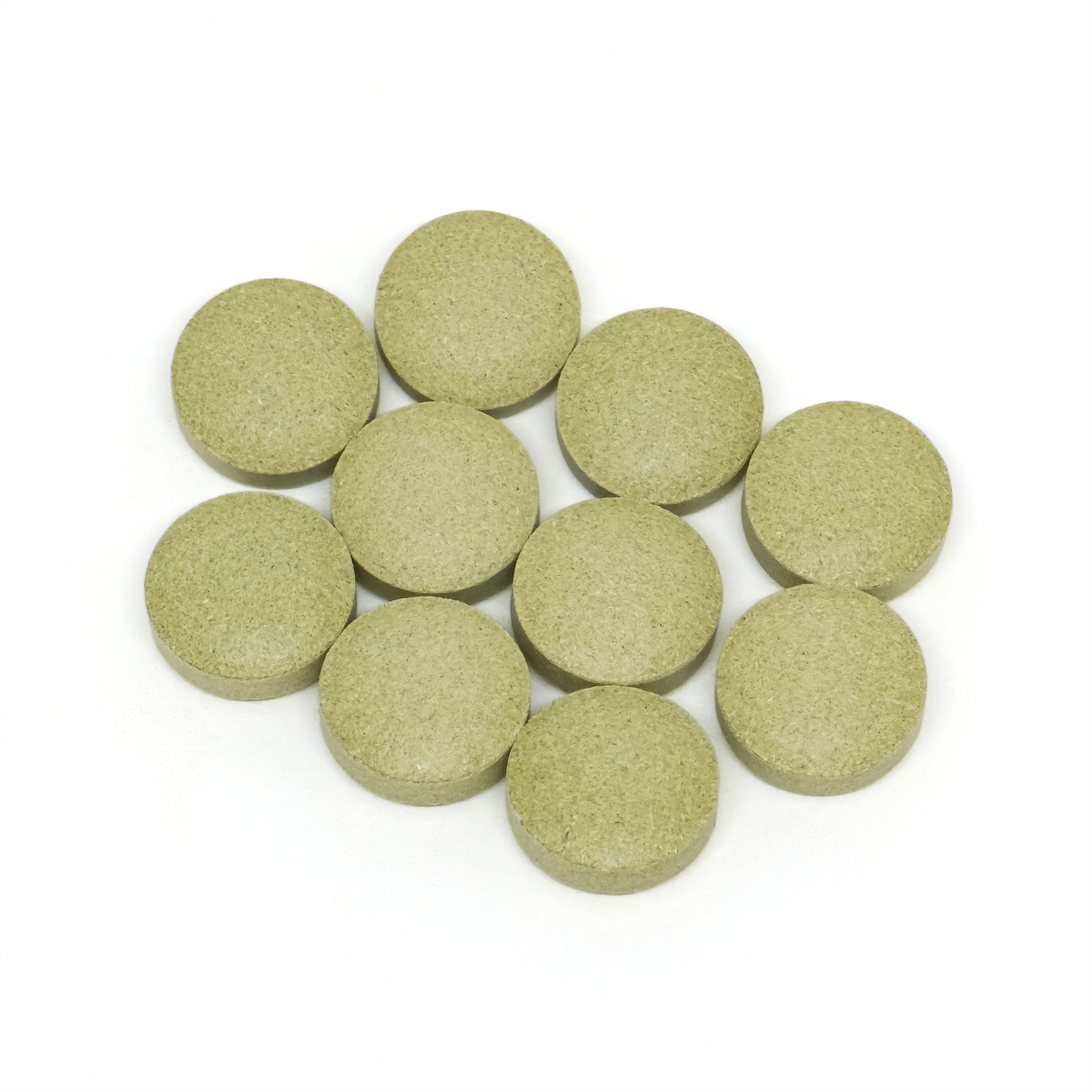 Die sorgfältig getrockneten Gräser werden in einer eigens dafür konzipierten Mühle schonend fein gemahlen. Ein Teil des grünen Pulvers wird anschliessend zu Presslingen gepresst. Diese Tabletten werden ohne Hilfsstoffe nur mit Druck aus dem reinen Graspulver hergestellt. 100 % Getreidegras in der praktischen Tablettenform.