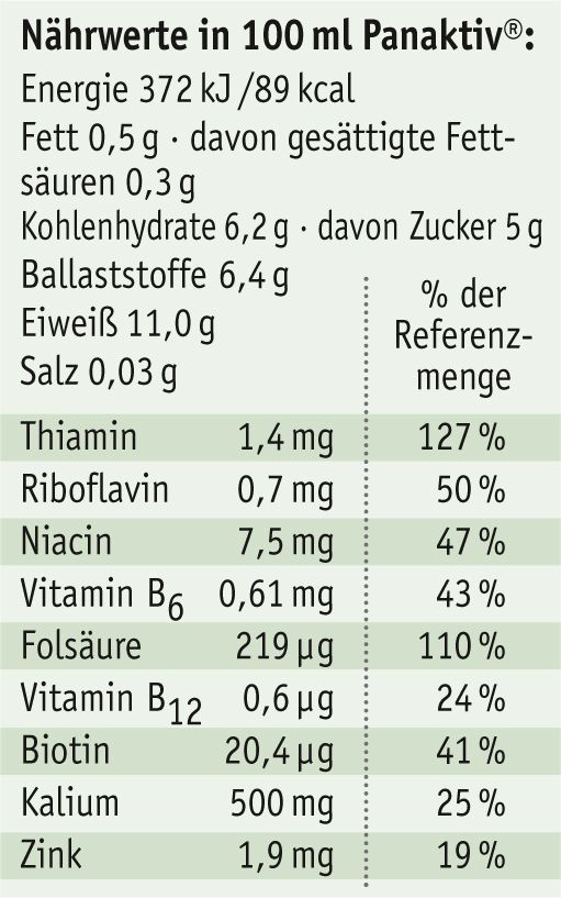 Bierhefe kann zu jeder beliebigen Tageszeit getrunken werden, am besten zwischen den Mahlzeiten. In mehreren kleinen Portionen ebenso wie in einer großen. Probieren Sie aus, was am besten in Ihren Tagesablauf passt und wie Ihnen Panaktiv® am besten schmeckt.